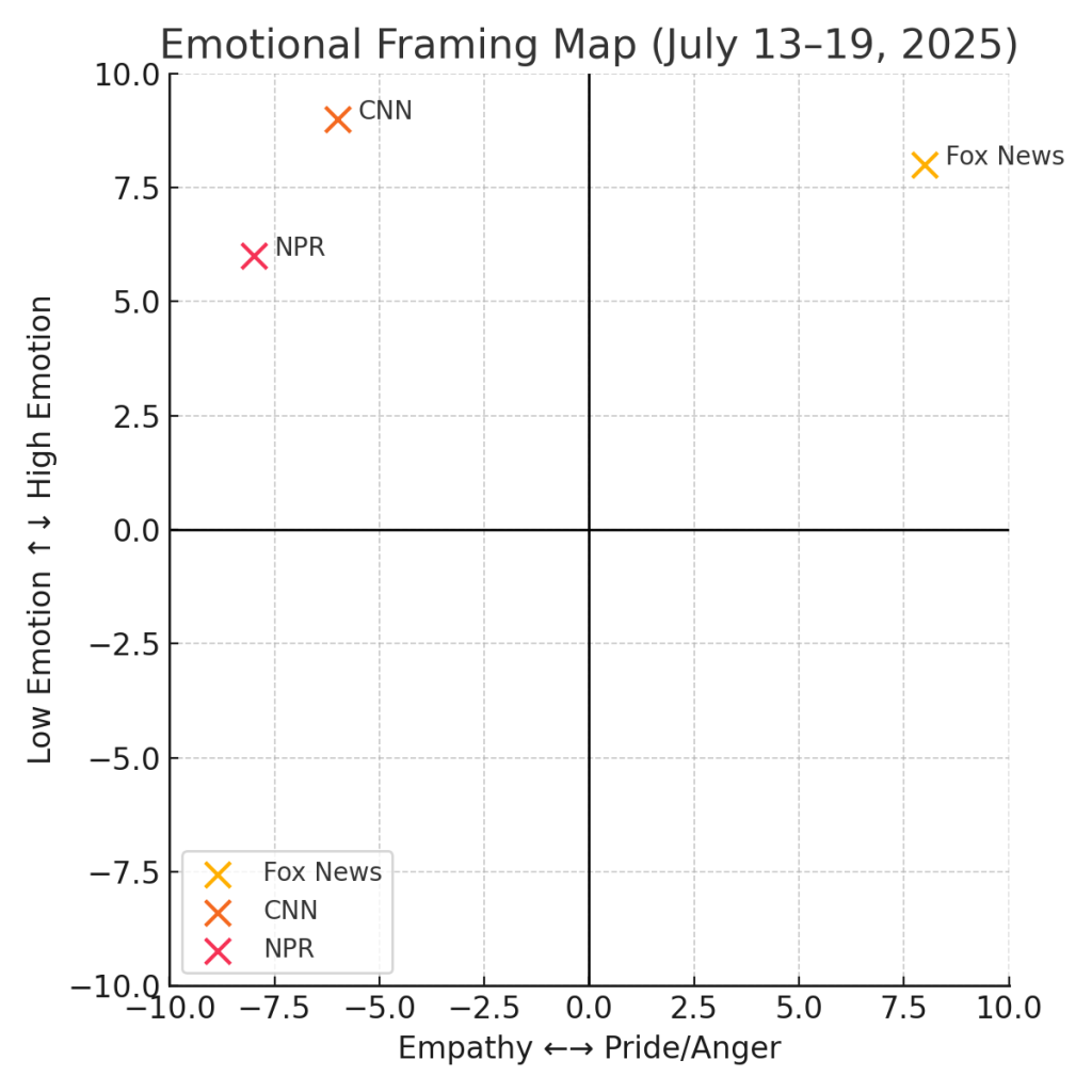 - Fox News leads with ideological framing, often reinforcing emotional validation for conservative audiences while sacrificing depth.