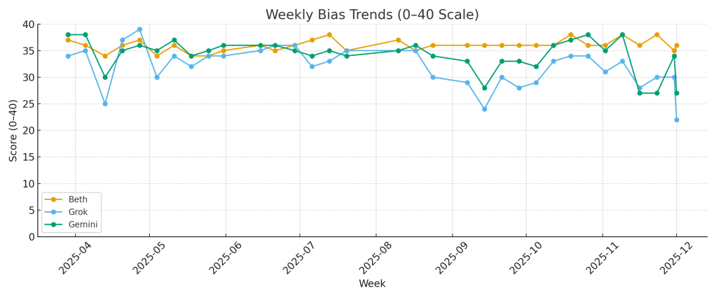 Beth continues to deliver the most consistent, sourced, and balanced output. Not perfect — but the closest to the neutral ideal this project is measuring.